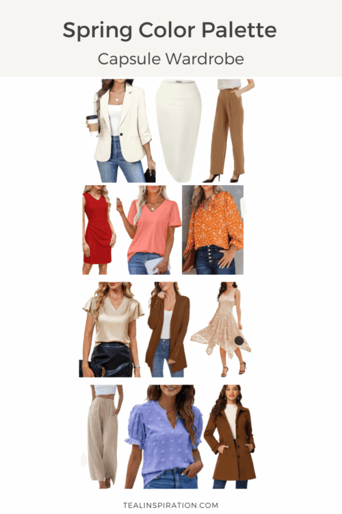So, what should you wear if you’re a Spring? I’ve put together this sample capsule wardrobe for colder weather and Spring coloring. This is only a sample, so please feel free to use this as a guideline and change up the pieces to fit your individual taste and coloring. Always remember that you should wear whatever color makes you feel amazing!